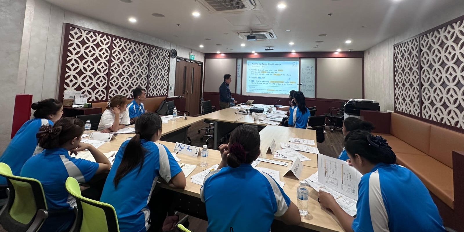 "In March 2025, 26 Moral Home nursing care staff successfully completed an 8-session Conversational Chinese for Nursing Care course, conducted in partnership with the Confucius Institute at Nanyang Technological University (NTU). This initiative aimed to bridge the language gap between care staff and Mandarin-speaking patients, enhancing the quality of care provided.